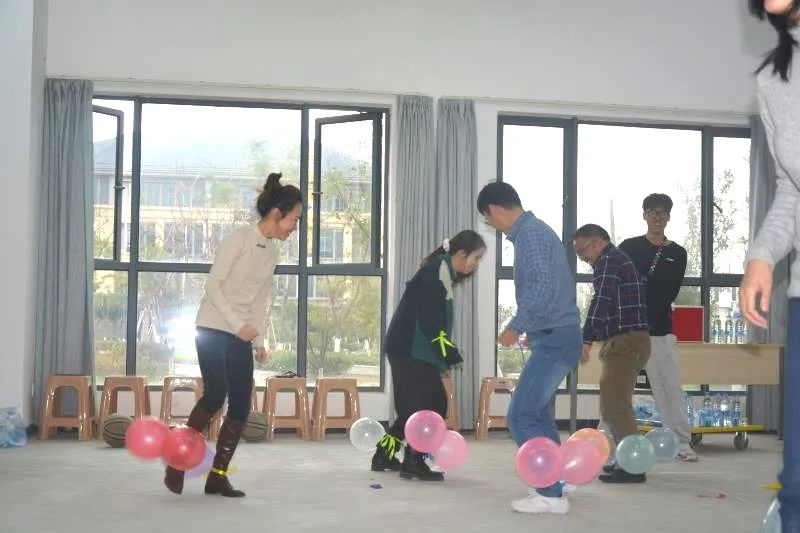 最后一项“踩气球”来了!整个教室充斥着欢声笑语,气球的爆破声此起彼伏,可见老师们的朝气与活力!