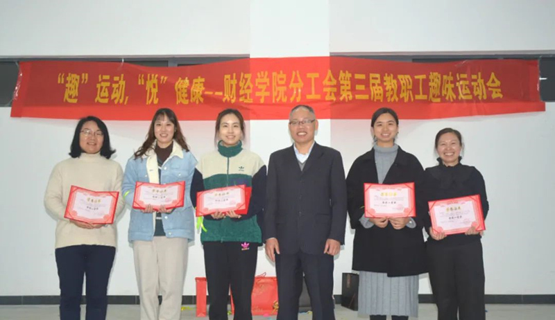 本次教职工趣味运动会,比赛项目趣味性十足,团队注重合作,勇当先锋。经过老师们的共同努力,“阳光队”取得了团体第一的好成绩。财经学院熊萧院长为获奖的老师们颁发证书。
