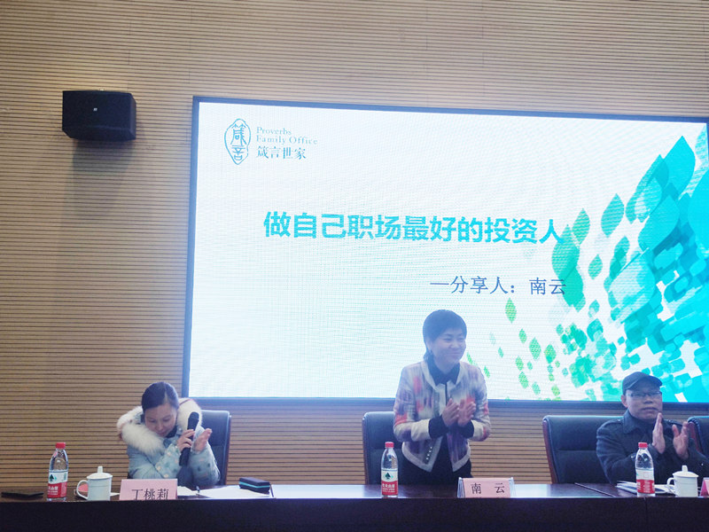 12月15日下午14:00,财经学院投资与理财和互联网金融专业在财经学院102阶梯教室联合举办了“做自己职场最好的投资人”经验分享讲座。财经学院院长熊萧、互联网金融专业主任丁桃莉出席此次讲座,同时也特别邀请了南云女士分享她的职场经验。本次讲座由丁桃莉老师主持。