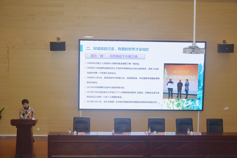 同时向同学们分享了她的职场理念:一、好理念自带阳光,多谢付出终身受益;二、好成绩自己造,有爱的世界才会灿烂;三、努力使自己向内成长向外发展,让优秀成为习惯。
