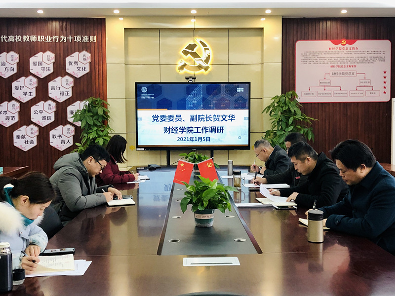2021年1月5日上午,学院党委委员、副院长贺文华深入财经学院开展工作调研,财经学院领导班子,学工办、综合办、教研室主任参加调研交流。