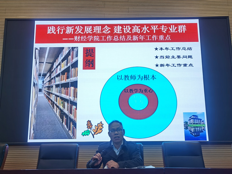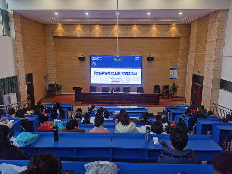 2021年1月21日下午,财经学院在1-102阶梯教室举行教职工期末总结大会。财经学院全体教职工参加会议。院长熊萧以“践行新发展理念,建设高水平专业群”为题作财经学院2020年度工作总结,并提出2021年度重点工作思路。