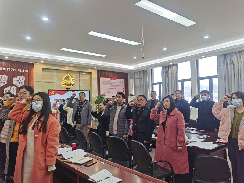 会议伊始,全体党员起立,重温入党誓词。大家面对鲜红的党旗,举起右拳,以庄严的宣誓铭记初心使命,表达对党的忠诚和使命担当。