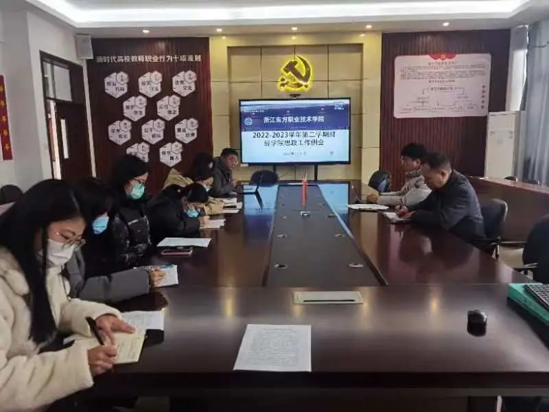 2月17日下午,财经学院在会议室召开新学期学生思政工作会议,对2022-2023第二学期学生思政及相关工作进行了部署,会议由财经学院党总支副书记缪枫、张勇智主持,全体辅导员共同参加此次会议。